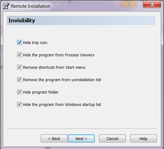 Now you should be at 'Invisibility', make sure all the boxes are Selected, then click 'Next'.